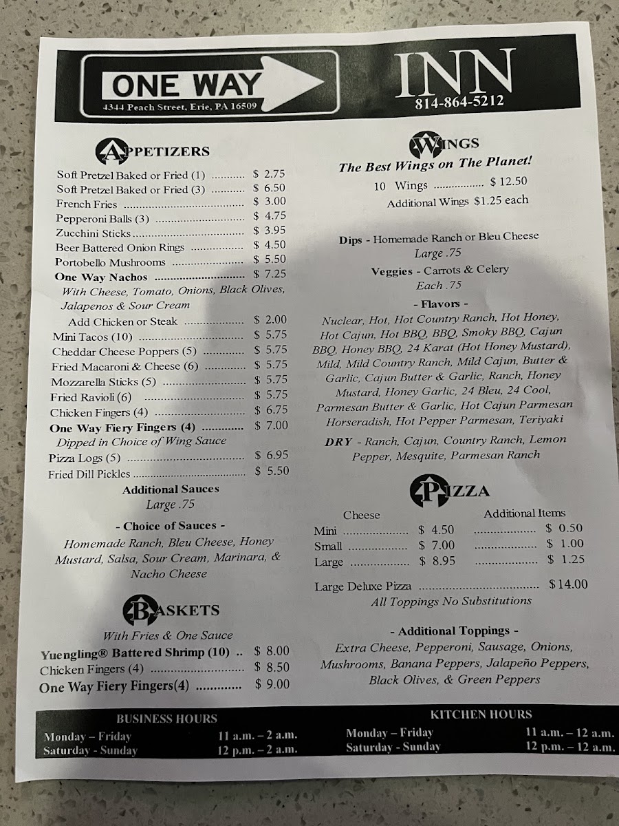 Overall, The One Way Inn is a must-visit for anyone craving delicious wings and a chill vibe. Don’t miss out on this Erie treasure!